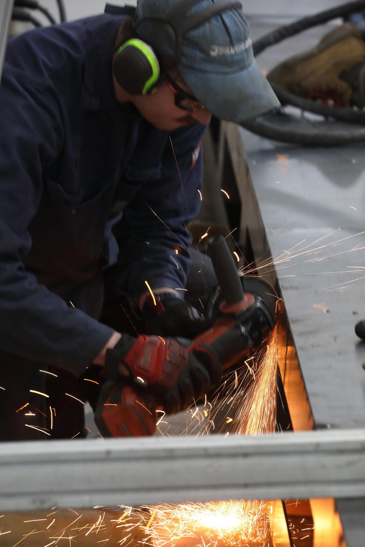 The new footbridge is a first of its kind in the UK; it rolls along the longitudinal axis, raising the deck over the navigation clearance and allowing boats to travel underneath. Made from weathering steel with parapets from galvanised reinforcing bar, the bridge was fabricated in four parts at the Cake Industries workshop and transported to site. It was lifted into a position on complex curved tracks sited on each dock edge. Steam bent oak rubbing strips sit as a sacrificial layer between the track and the bridge. The entire bridge is operated using a pair of manual winches.