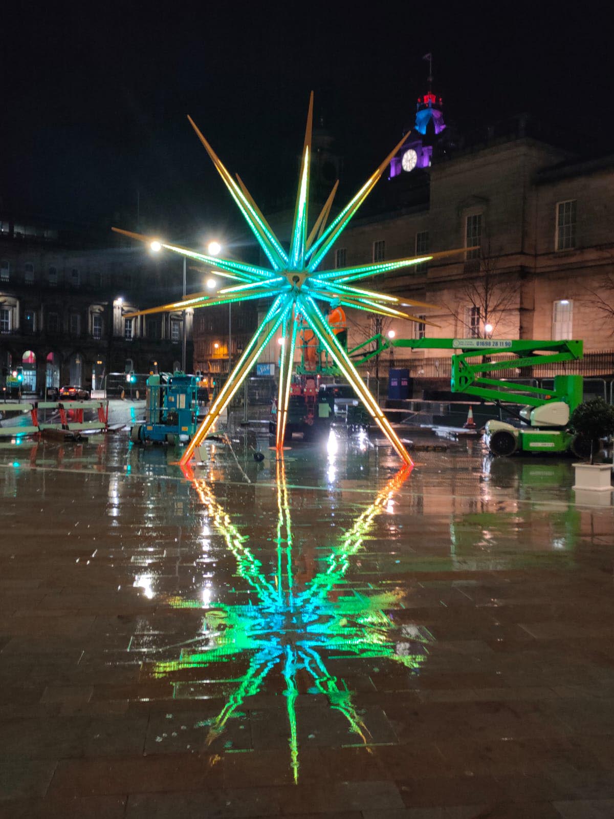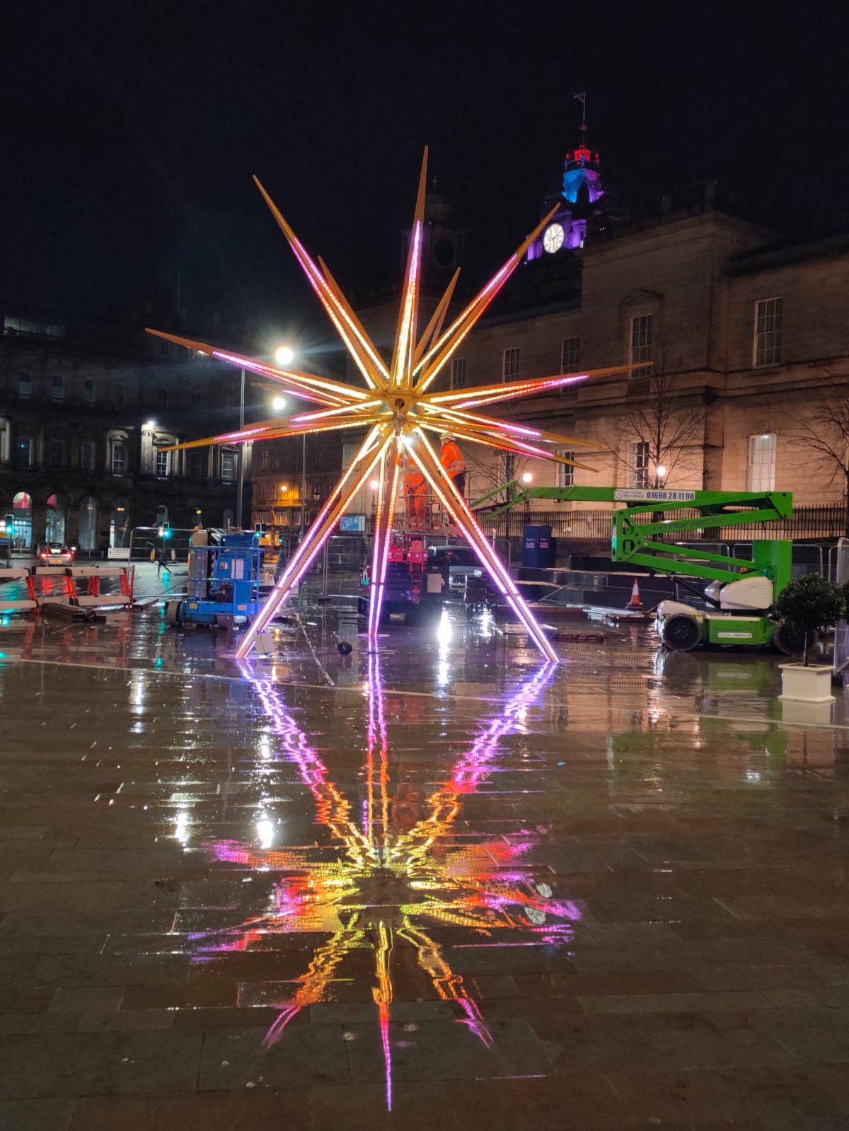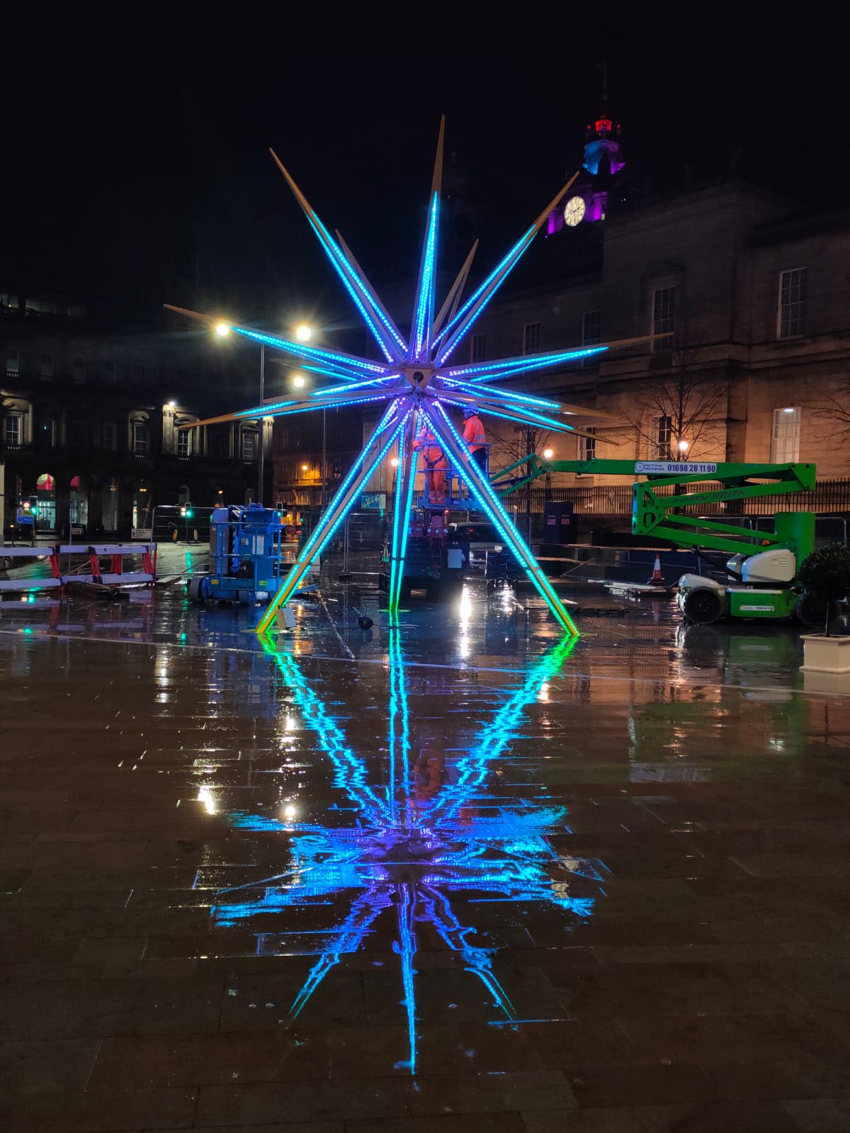 Installed at St James Quarter, Edinburgh, this 8m star sculpture, created for James Glancy Design, combines festive spectacle with structural ingenuity.