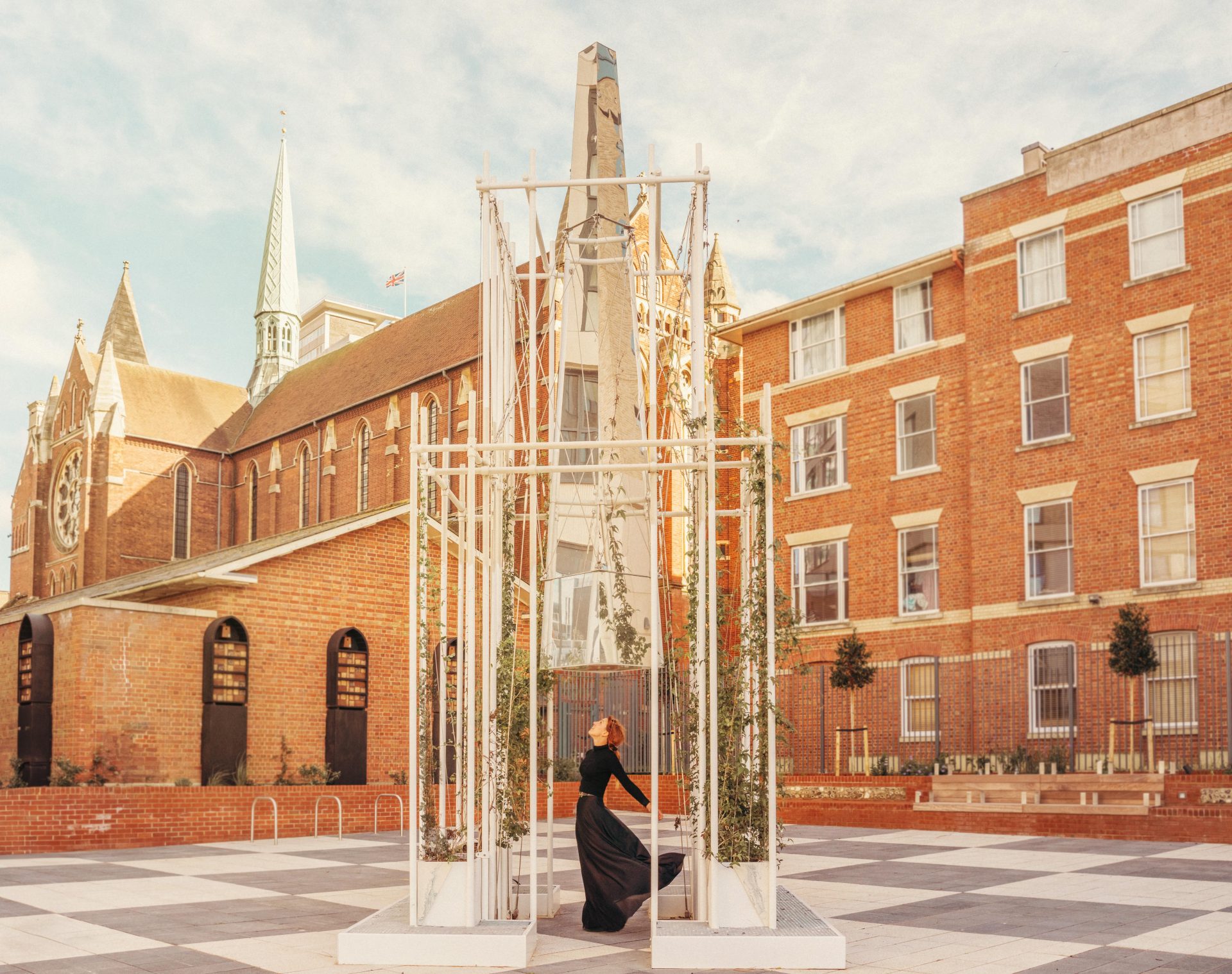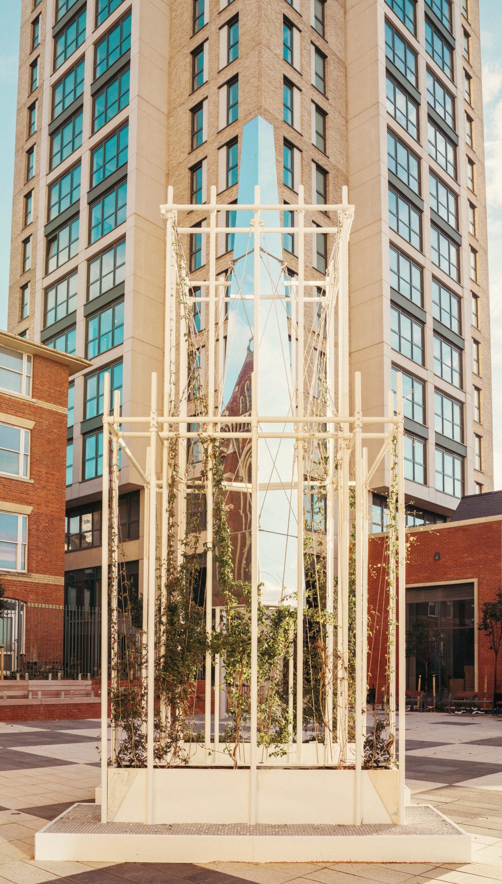 Kaleidosteeple is a permanent public artwork for St Michael’s Square, Croydon, commissioned by London Square. Inspired by the verticality of a church steeple and the shifting geometries of a kaleidoscope, it creates a landmark that invites both reflection and interaction. Suspended within a modular steel frame, the lightweight “steeple” structure is clad in mirrored surfaces, open to the sky and viewed from beneath, transforming the square into an ever-changing observatory. Both poetic and precise, Kaleidosteeple reframes the urban experience—encouraging visitors to pause, gather, and rediscover their city through kaleidoscopic perspectives while reinforcing a strong sense of place and identity.