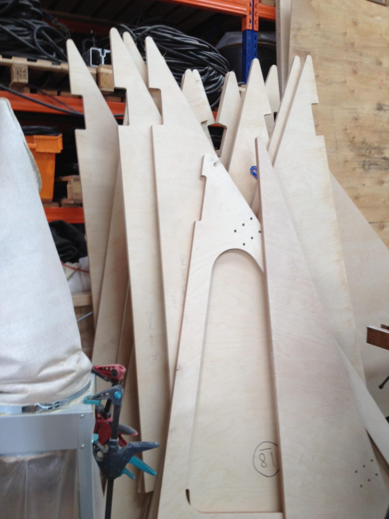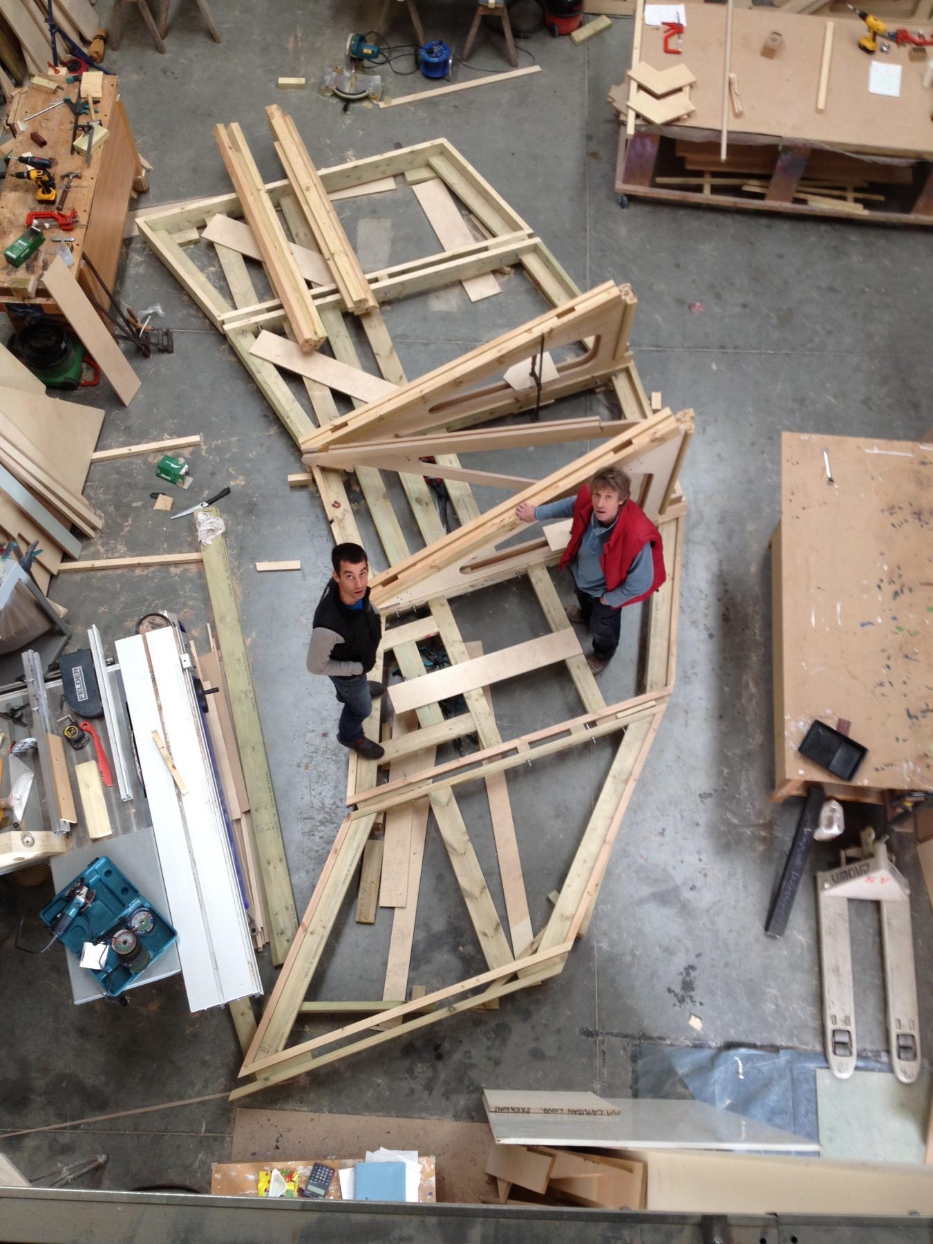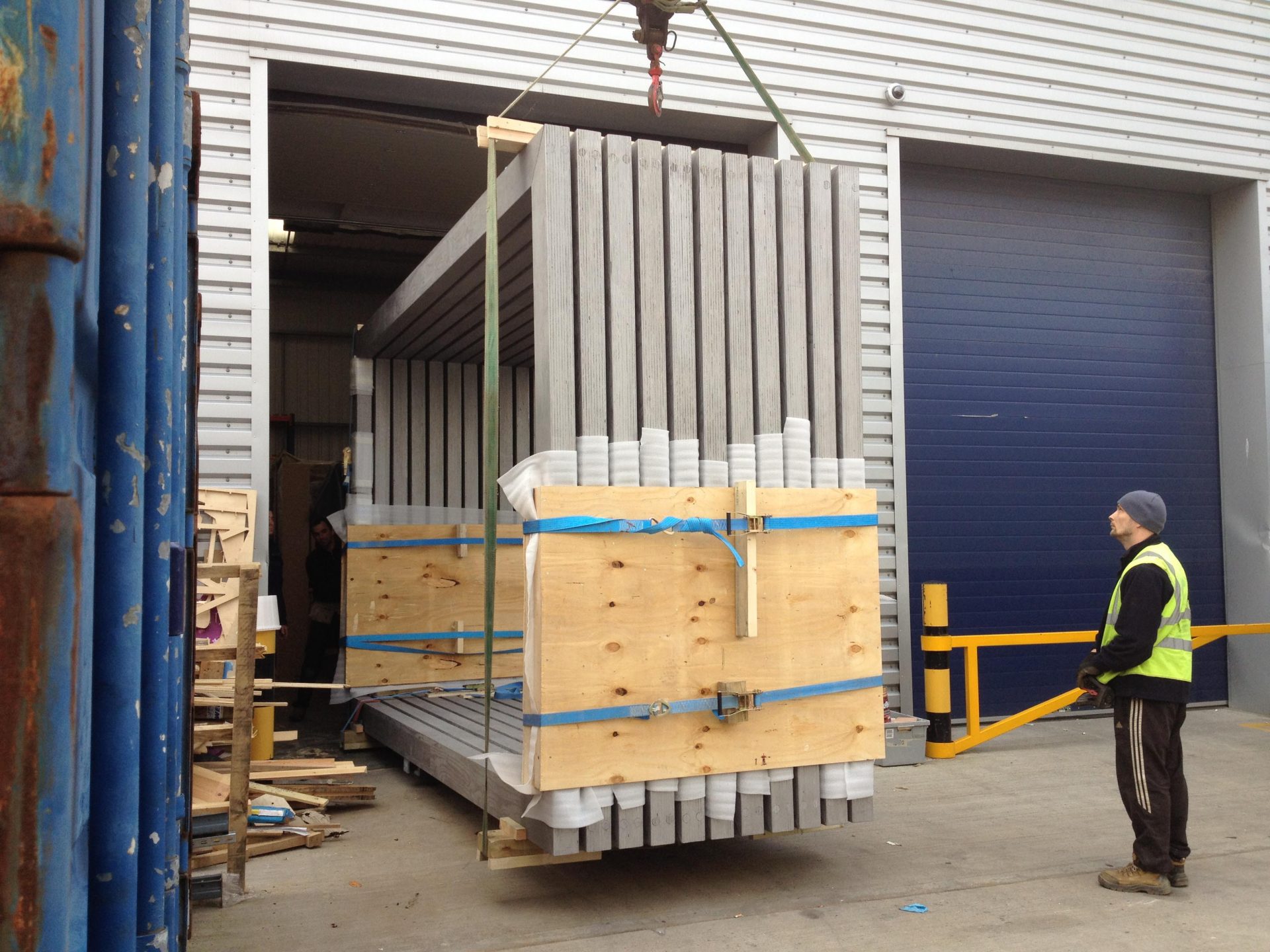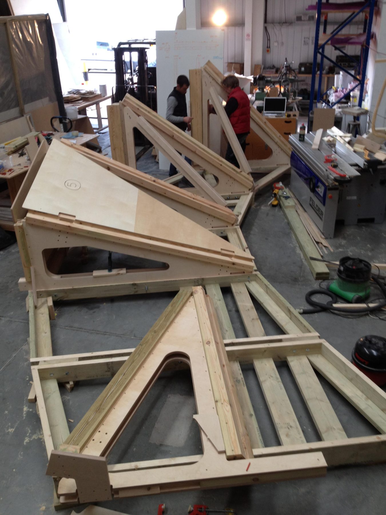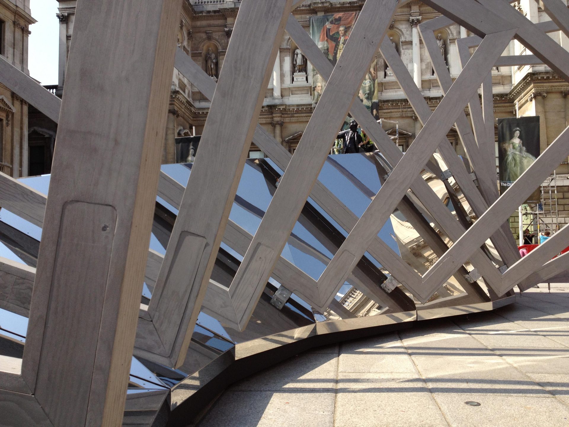The sculpture was designed in modules to be transported to the RA courtyard and assembled via Hiab crane. With minimal intervention permitted (no ground anchorage) the structure was held down with temporary ballast placed within its frame. After the Summer exhibition, the sculpture was relocated to a semi-permanent location in Canary wharf