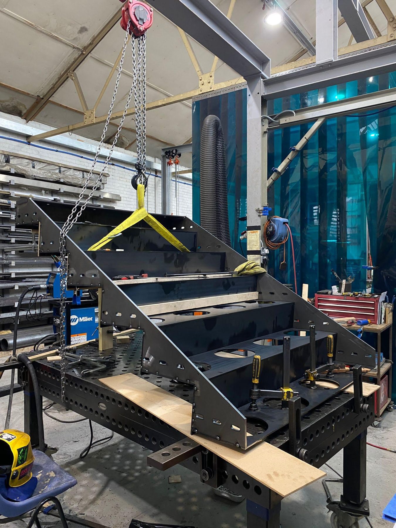 Cake Industries were commissioned to work with Jamie Fobert Architects to fabricate this raw steel staircase for the new Pace Gallery in central London. The intention was to form a series of large planes from regular modules to make a strong vertical connection between the two floor levels.